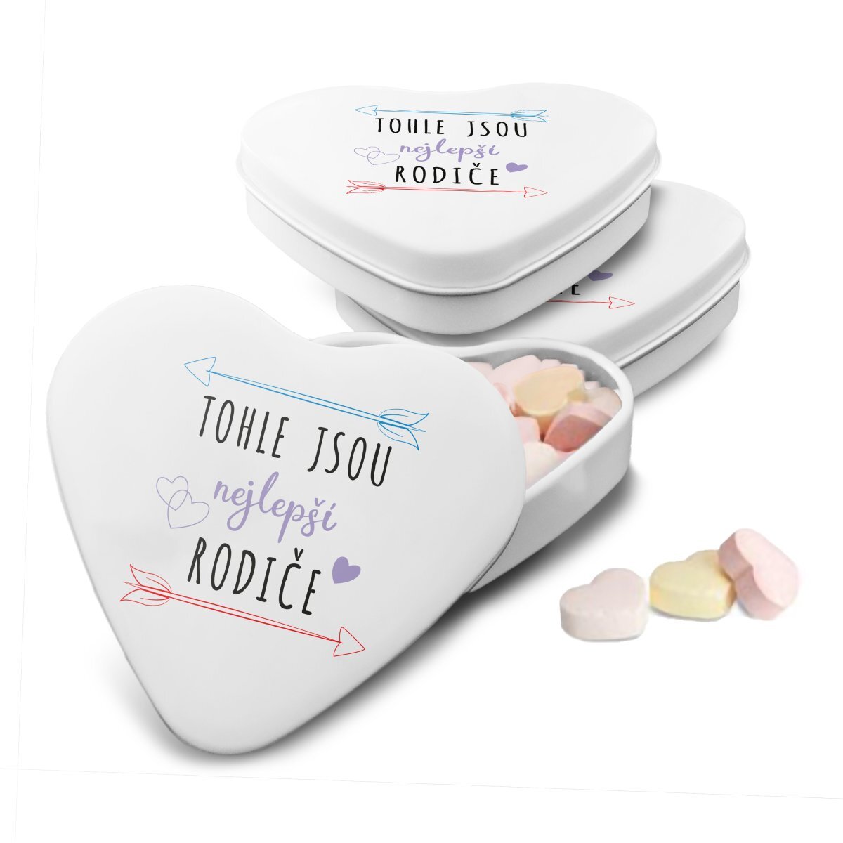 Bonbónky v srdíčkové krabičce s originálním motivemBonbónky jsou malým dárečkem pro potěšení a je vhodné darovat je jako doplněk s jiným dárkem z našeho e-shopu nebo v dárkové krabičce s ostatními produkty.Udělejte radost malým dárkem do kapsy, sladkými bonbóny v kovové krabičce ve tvaru srdce. Každého mlsouna potěší "Lipo" bonbónky v krabičce, kterou může dále používat a poslouží mu jako milá vzpomínka. V krabičce jsou namixované různé příchutě bonbónků ve tvaru srdce. Originální potisk dodá bonbónkům nádech výjimečnosti.Rozměr: 70 x 65 x 15 mmHmotnost: 40g