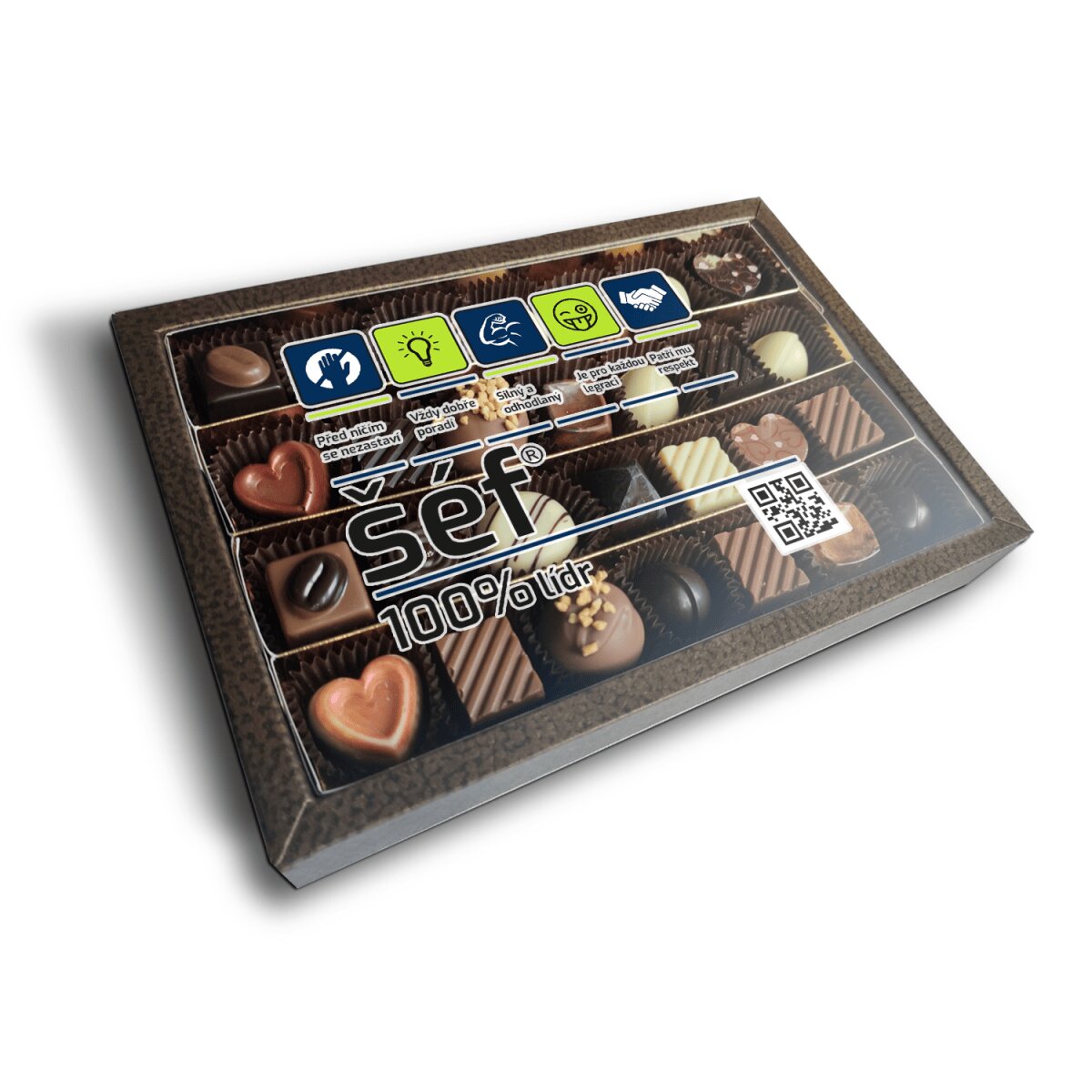 První dojem ale udělá dárková krabička s originálním motivem. Osobní věnování udělá vždy radost. Průhledné víko navíc nabídne krásný pohled na lahodné pralinky.