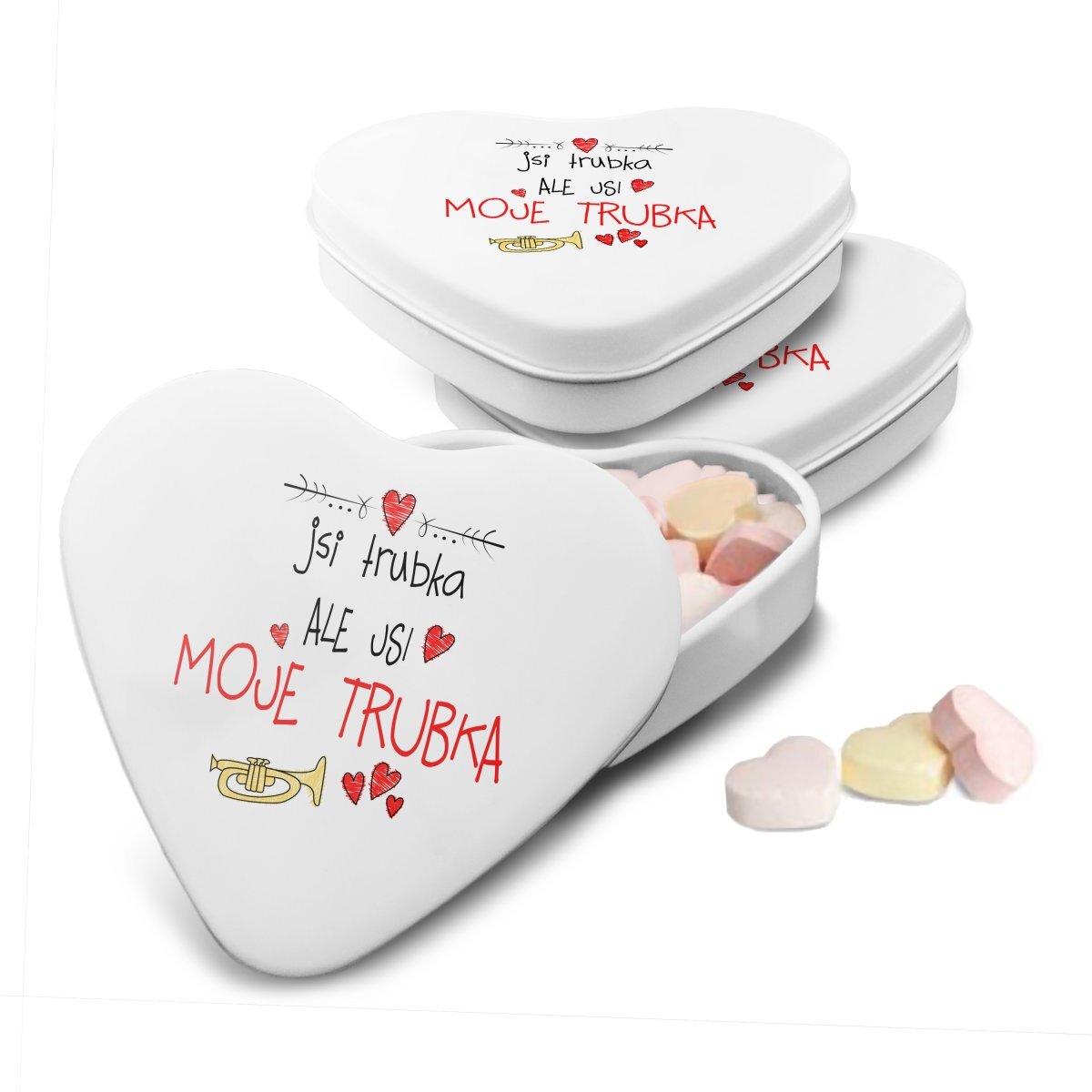 Hledáte malý, ale výjimečný dárek, který potěší každého mlsouna? Bonbónky Jsi trubka, ale jsi moje trubka v krásné srdíčkové kovové krabičce jsou ideální volbou pro všechny, kdo chtějí darovat něco sladkého a zároveň s osobním a zábavným nádechem.