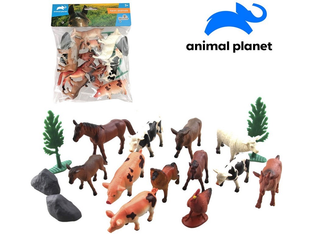 Zvířátka farma, 16 ks, 11 cmHračka je určena pro děti 3+.Rozměr hračky je 11cm.Materiál hračky je pvc.Balení hračky je sáček.Aplikace pro rozšířenou realitu AR ke stažení z QR kódu na boxu produktu. Licence Animal Planet. Vyrobeno z recyklovaných materiálů, barveno inkousty Soy-Based. Eco-Friendly.