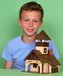 - Dřevěná stavebnice s jednotlivými díly připravenými ke slepení.