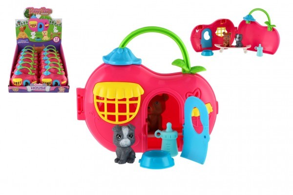Domeček se zvířátkem plast s doplňky 13x11x5cm 12ks v boxu