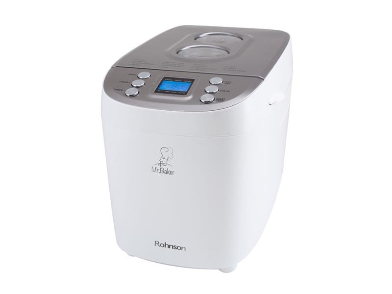 Domácí pekárna se 2 nepřilnavými hnětacími háky. Rohnson R-2098 Mr. Baker disponuje funkcí udržování teploty na 1 hodinu. Díky integrovanému průzoru ve víku pekárny lze sledovat průběh pečení. Na LCD displeji snadno vyberete jeden z 15 programů včetně programu pro pečení bezlepkového chleba.