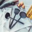 Všechny nástroje mají praktické otvory pro zavěšení, což spolu s přiloženým úchytem umožňuje snadné a přehledné skladování na jednom místě, takže je máte vždy po ruce. Sada je vyrobena z kvalitního a odolného polypropylenu (PP) v elegantní černé barvě, která se hodí do každé moderní kuchyně.