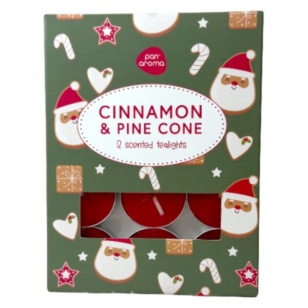 PanAroma sváteční vonné čajové svíčky skořice a borovice- 12kskrásné balení s 12ks vonných svíček pro navození sváteční atmosféry v bytě i domě.