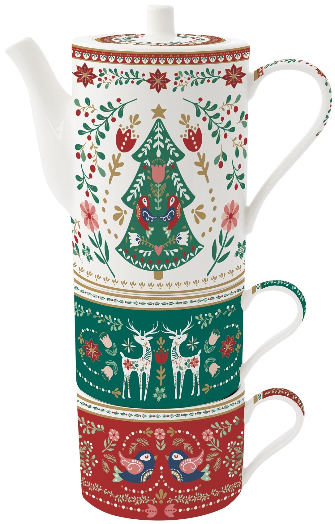 Porcelánový čajový set pro dva Christmas Folk je součástí kolekce Christmas Folk italské značky Easy Life