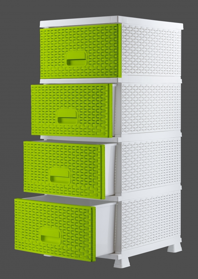 Mega Plast, RAF komoda polyratan, se zásuvnými šuplíky, 44 x 37 x 90,5 cm, bílá/sv. zelená