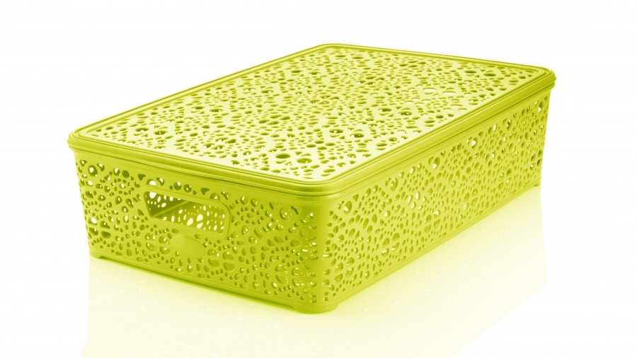 Mega Plast, Košík MONAKO L s víkem, 10,2 x 40,3 x 27 cm, švětle zelený