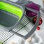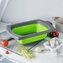 Díky modernímu šedo-zelenému designu se cedník hodí do každé kuchyně, a závěsný štítek umožňuje jeho pohodlné skladování.