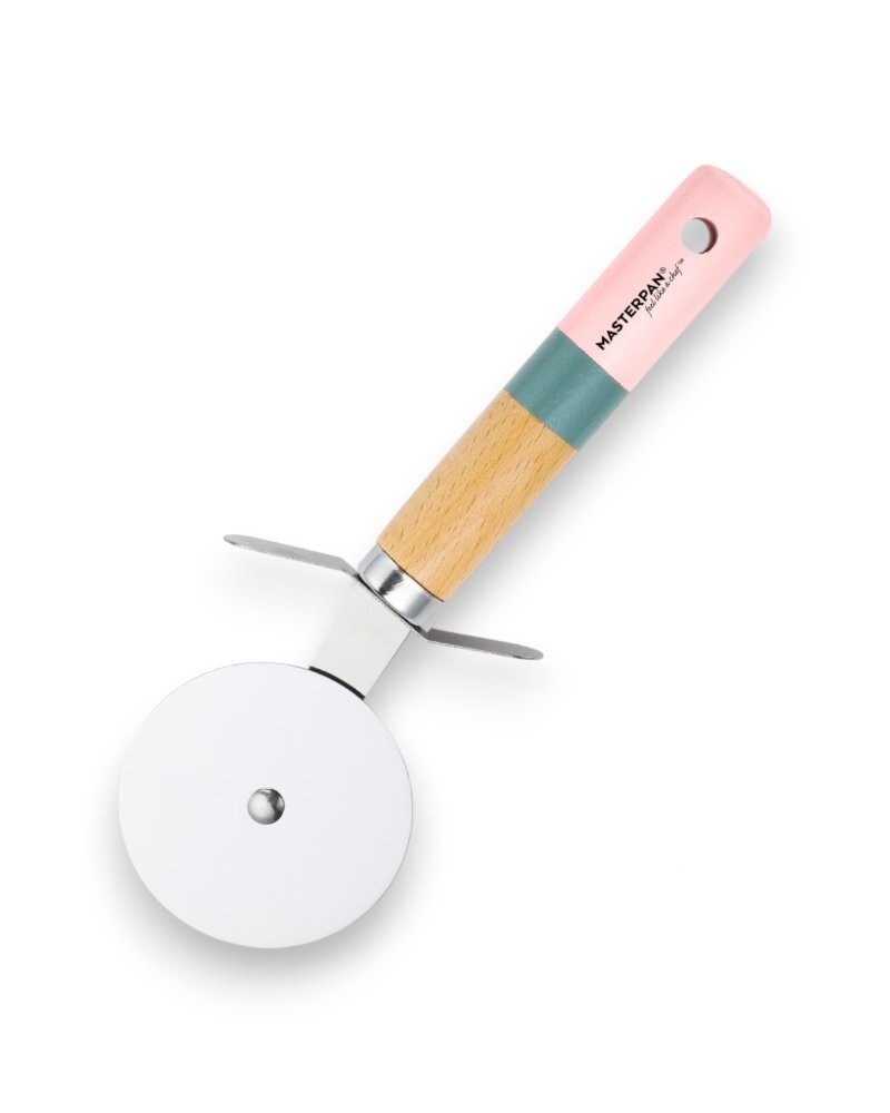 Kráječ na pizzu s dřevěnou rukojetí – růžovo-modrý