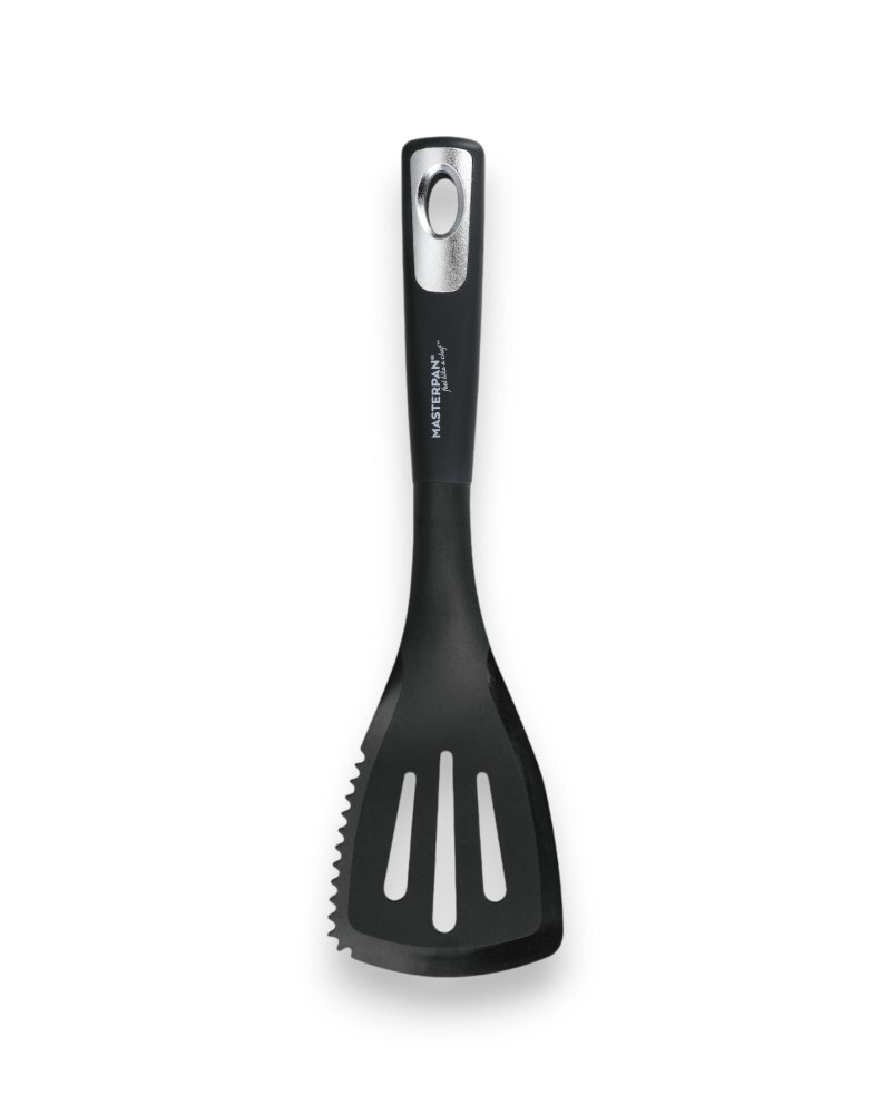 Tato děrovaná obracečka s ergonomickou rukojetí je ideálním kuchyňským pomocníkem pro každého, kdo chce usnadnit manipulaci s jídlem a zároveň ochránit své nádobí.
