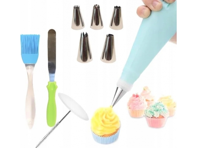 Sada obsahuje prvky, které vám usnadní práci a pomohou doladit každý dezert k dokonalosti. Od flexibilního silikonového štětce přes praktickou stěrku až po rozmanité zdobící špičky vám umožní kreativně vyjádřit svůj talent a oživit každý dort, zákusek či koláč.