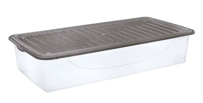 Tento lehký a odolný úložný box o objemu 35,6 litrů nabízí dostatek prostoru pro vaše věci. Díky transparentnímu provedení na první pohled vidíte, co je uvnitř, a nemusíte zbytečně otevírat každý box, když hledáte potřebné předměty. Protáhlé, nízké a široké rozměry (78,3 x 39,2 x 16,5 cm) umožňují snadné umístění pod postel, skříň nebo jiný nábytek, kde vaše věci budou chráněny před prachem a poškozením. Navíc lze boxy ze stejné řady pohodlně stohovat, čímž ušetříte místo a udržíte pořádek i ve skříních či skladovacích prostorách.