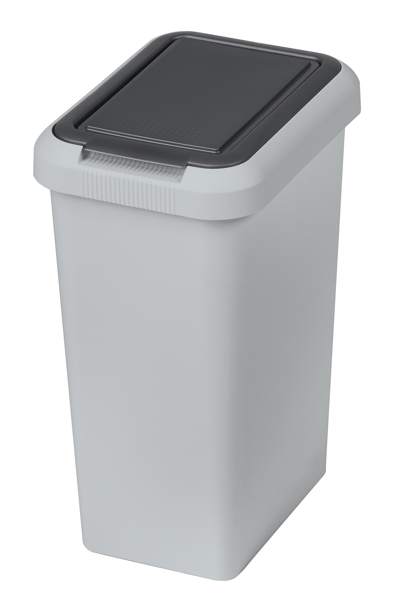 Tento 25litrový koš v atraktivní kombinaci šedé a antracitové barvy je ideální volbou pro každého, kdo hledá efektivní řešení pro sběr odpadu. Díky originálnímu systému dvojího otevírání můžete víko zvednout kolmo nebo využít klapkový skluz, což zjednodušuje odhazování drobného odpadu a omezuje šíření nepříjemných pachů.