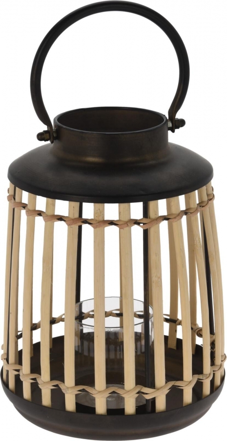 Koopman, Lucerna BAMBUS, průměr 18,5 cm, výška 25 cm, černá/natur