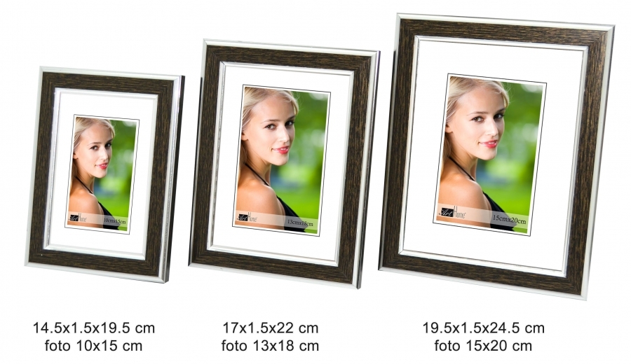 DUE ESSE, Set 3 ks fotorámečků dekor tmavé dřevo, 10x15 cm / 13x18 cm / 15x20 cm
