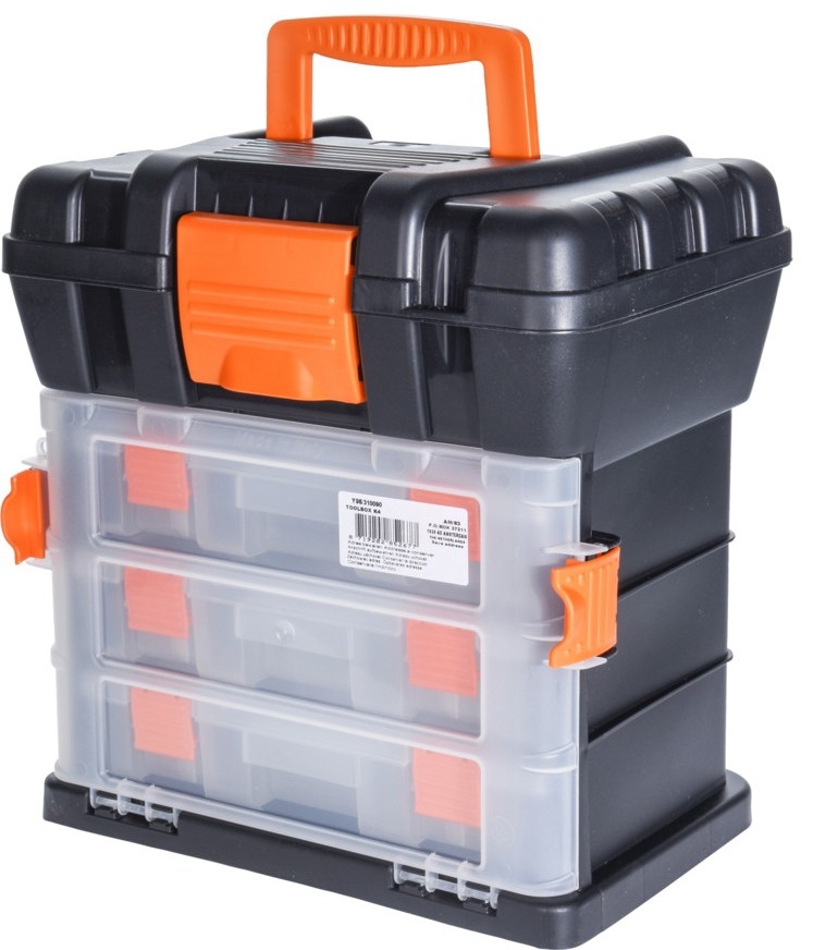 Box na nářadí - organizér o rozměrech 26 x 34 x 35 cm, který obsahuje 3 organizéry a 1 úložný prostor na nářadí pod víkem. Praktická kombinace klasického organizéru a kufru, vhodná na uložení a přenášení drobností (šroubky, vruty, matice, podložky, těsnění apod.).