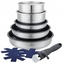 Odnímatelná rukojeť přináší maximální pohodlí - nádobí lze snadno přenášet, skládat na sebe a používat v troubě až do 260 °C (bez rukojeti). Sada je kompatibilní se všemi druhy sporáků - plynovými, elektrickými, keramickými i indukčními.