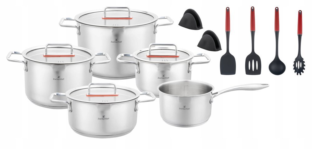 Tato kompletní sada nerezového nádobí s červenými silikonovými detaily je ideálním řešením pro každou kuchyni. Vyrobena z kvalitní nerezové oceli, která je odolná vůči korozi, snadno se čistí a má přirozené antibakteriální vlastnosti.