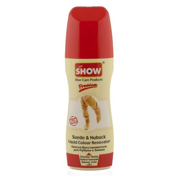 Show - renovátor na semiš s aplikátorovou houbičkou - bezbarvý - 75ml speciální renovátor semišové obuvi, který pomocí aplikátorové houbičky aplikujete přímo na boty. Obnovuje barvy a navrací obuvi příjemný a měkce sametový povrch. Nejprve obuv pečlivě vyčištěte, následně aplikujte přípravek (před použitím protřepat). Balení 75ml