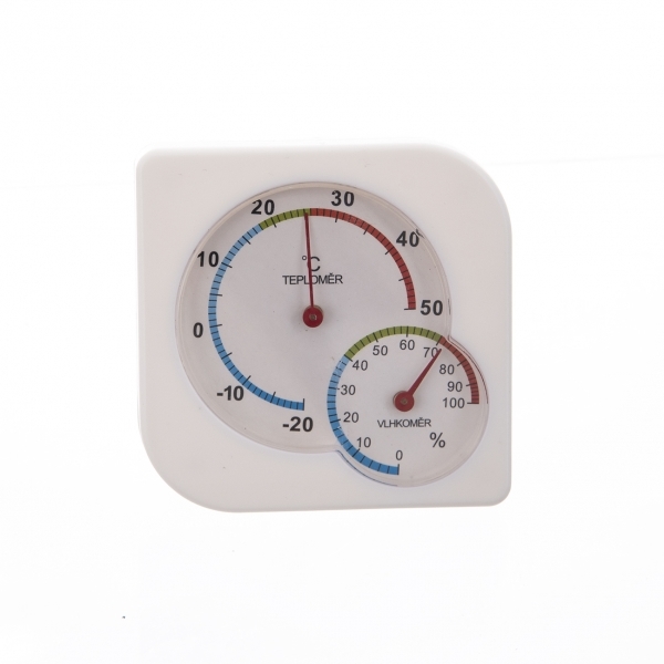 Teploměr s vlhkoměrem je ideální volbou, pokud potřebujete mít vždy pod kontrolou počasí, ať už na terase, v zahradě nebo v domácnosti. Měří teplotu v rozsahu od -20 °C do 50 °C a vlhkost vzduchu od 0 % do 100 %. Díky jednoduchému mechanickému provedení nevyžaduje baterie a funguje spolehlivě dlouhodobě. Jeho kompaktní rozměry 7,5 × 7,5 × 1,3 cm a materiál z odolného plastu ABS zajišťují snadnou manipulaci a dlouhou životnost.