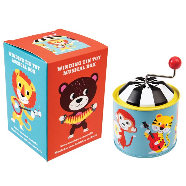 úžasná a tradiční hračka, hrací magická skříňka s tradičním kovovým hracím strojkem. Skříňka ve tvaru bubínku z cirkusu zahraje vždy nádhernou melodii, stačí jen otočit kličkou. Hudba je příjemná a uspává také malé děti. S touto hračkou si vyhrají jak malí tak velcí muzikanti.