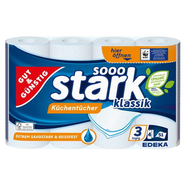 extrémně savé utěrky pro kuchyňské účely. Jedna role má 51 útržků, utěrky jsou 3 vrstvé, takže jsou velmi pevné a mají velmi dobrou savost.