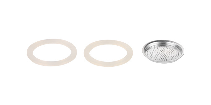 Náhradní díly pro kávovar PALOMA, 2 šálky (art. 647002). Filtr vyroben ze zdravotně nezávadného hliníku (EN 601), těsnění z odolné silikonu. Používejte výhradně pro kávovar PALOMA odpovídající velikosti, nemyjte v myčce. 3 roky záruka.