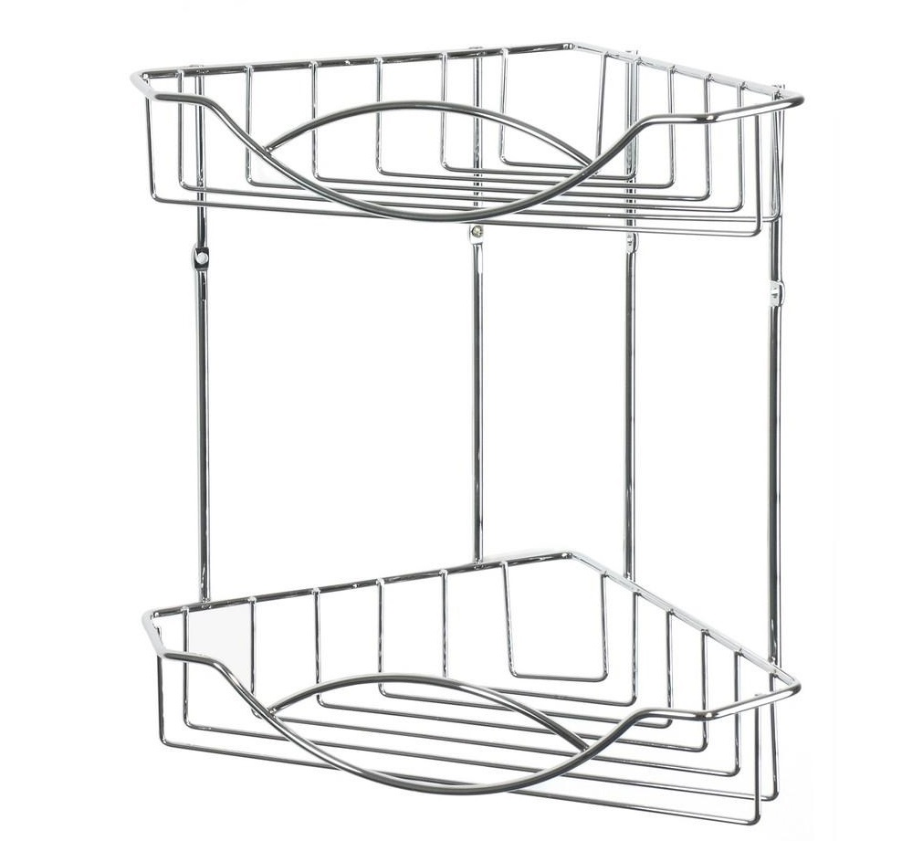 Kvalitní dvoupatrová rohová koupelnová polička vyrobená z dvojitě chromovaného drátu. Rozměry 31 x 31 x 20 cm. Montážní materiál je součást balení. EAN 5904993720066 číst celé