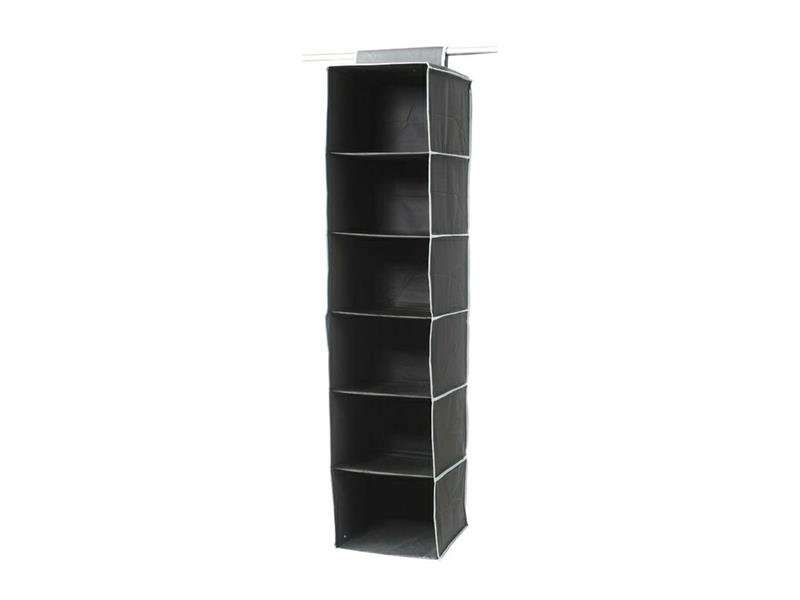 Závěsné poličky do vaší skříně vám zvětší odkládací plochy. Ve vaší skříni si vytvořte více úložného prostoru. Závěsné poličky se jednoduše připevní k šatní tyči a vám vznikne 6 nových polic, kde můžete uložit třeba vaše svetry,mikiny, trička či třeba ložní prádlo. Připevnění k šatní tyči je vytvořeno pomocí suchého zipu a je dostatečně pevné pro zatížení až 6 kg vašeho oblečení. Závěsný organizér je vyroben ze 100% polypropylenové netkané textilie a rozměry polic jsou 30 x 30 cm. Výška celého organizéru je pak 128 cm, což je rozměr vhodný do každé skříně. Dno každé poličky je vyztuženo kartonem, tedy celý system polic je pevný a drží tvar tak, aby vaše spokojenost se závěsnými policemi byla maximální.