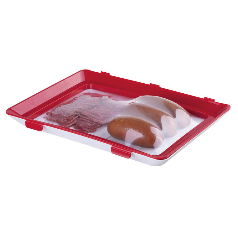 Novinka v uchovávání potravin. Již žádné zbytečné skladování potravin v igelitových sáčcích. Víko s pevnou elastickou fólií vzduchotěsně obejme potraviny a zaručí tak jejich delší čerstvost a trvanlivost. Díky možnosti stohování ušetříte spoustu místa v lednici. Vhodné do mikrovlnné trouby, myčky, lednice i mrazničky.