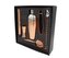 Všechny položky jsou měděné barvy, někdy s ocelovými vložkami. Tento barmanský set působí velmi elegantně a osloví barmanku i barmana.Sada je zabalena v elegantní černé krabičce s tvarovaným pouzdrem na jednotlivé doplňky.