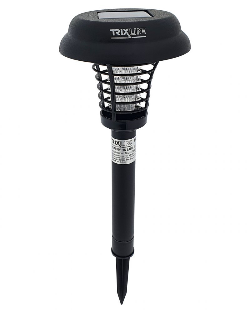 LED solární lampa, s dvěma LED, 1x klasická bílá pro dekorativní osvětlení a 1x UV fialová LED pro likvidaci komárů.