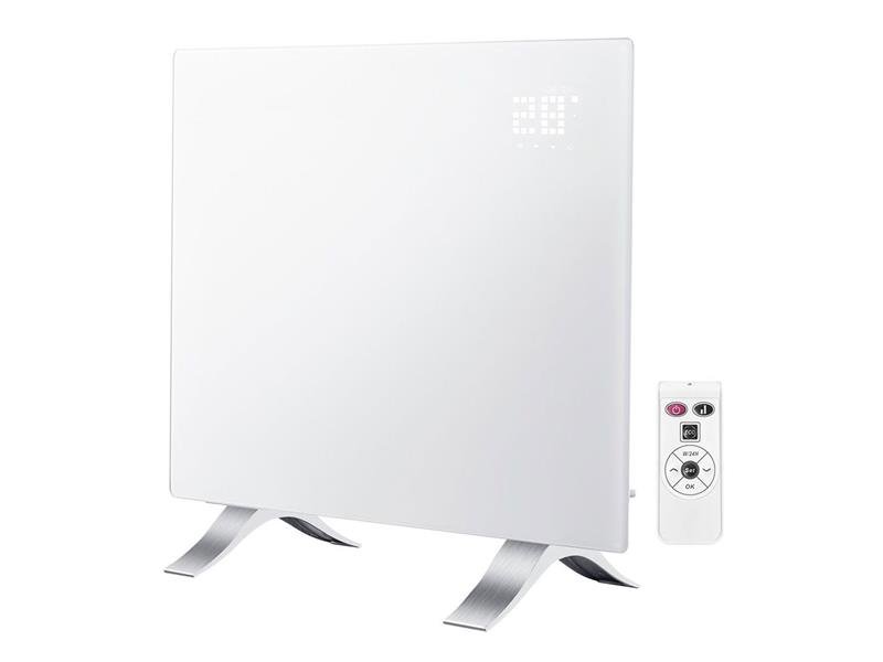 Výrobek se vyznačuje moderním a elegantním designem. Byl vyroben z tvrzeného skla s vysokou pevností. Hliníkový topný systém nové generace, pracuje bez hluku, zápachu, plynu nebo kouře. Teplo je cítit ihned po zapnutí konvektoru. Dotykový LED displej je jednoduchý a intuitivní. Jednotka je vybavena přesným termostatem s regulací teploty v rozsahu 5-45°C. Dálkové ovládání usnadňuje programování provozního režimu. Týdenní program v zařízení lze ovládat jak dálkovým ovladačem, tak dotykovým panelem. Ohřívač má ochranu proti přehřátí, ochranu proti převrácení a ochranu před dětmi, což ovlivňuje bezpečné používání. Výrobek disponuje funkcí proti zamrznutí pro udržení minimální teploty v místnosti a funkcí detekce otevřených oken. Ohřívač lze postavit na podlahu nebo namontovat na stěnu - hliníkové nohy a sada pro montáž na stěnu jsou součástí balení. Tento výrobek je vhodný pouze pro příležitostné použití nebo pro použití v dobře izolovaných místnostech.