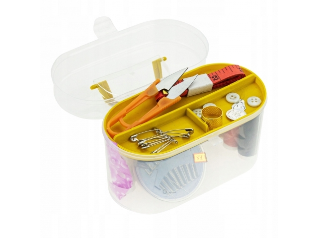 Vše je pečlivě uloženo v kompaktní a přenosné plastové krabičce o rozměrech 14,5 x 7,3 x 9,3 cm. Tato krabička nejenže zajistí, že všechny vaše šicí potřeby budou vždy pečlivě uspořádané, ale také vám umožní snadno vzít si celou sadu na cesty.