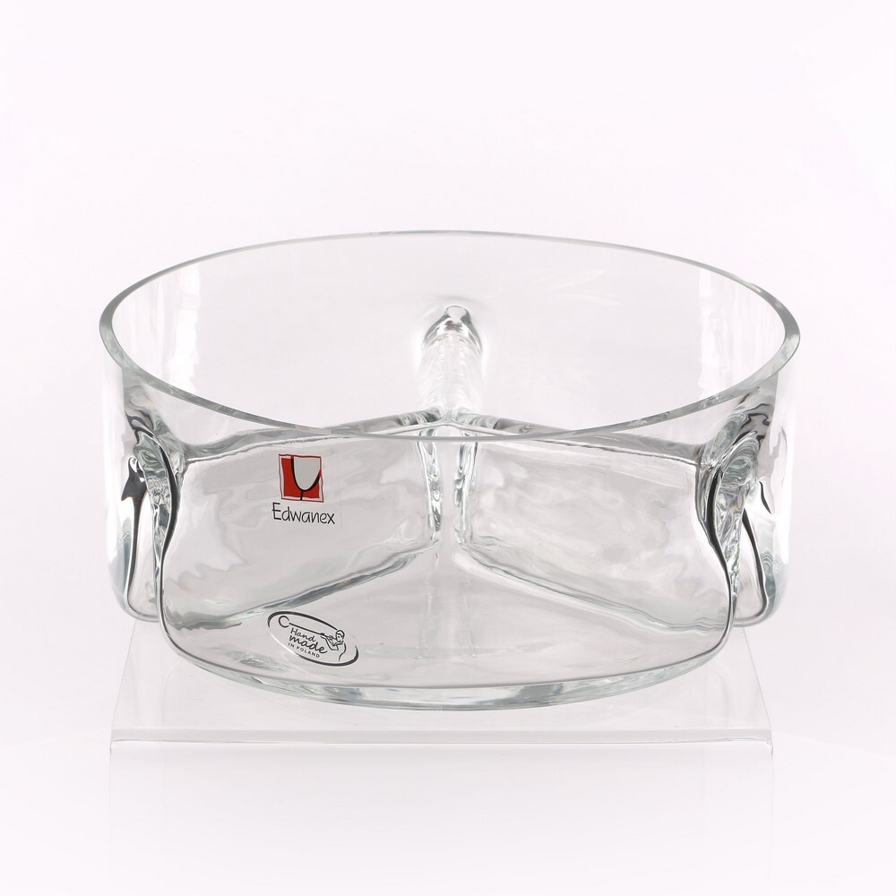 Stylowa salaterka o średnicy 23cm to naczynie niezwykle pomocne w każdym domu. Praktyczna i funkcjonalna, pozwoli na podanie trzech, zupełnie różnych smakołyków, bez konieczności brudzenia kilku naczyń. Idealna do serwowania wszelkich przekąsek, drobnych owoców, czy innych łakoci. Wykonana z grubego szkła,jest higieniczna i bez przeszkód można myć ją w zmywarkach. Dzięki trzem wygodnym przegródkom, sama w sobie będzie oryginalną ozdobą stołu, zwłaszcza jeśli zadbamy o różnorodność produktów i kolorów.