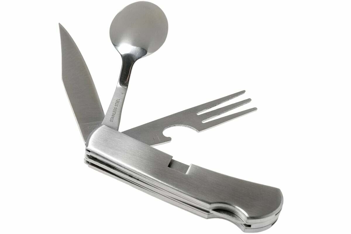Praktický prenosný príbor KA-BAR KB-1300 HOBO sa skladá z vidličky, noža a lyžice. Je určený na cesty, alebo na vonkajšie stolovanie pri kempovaní, či v práci na stavbe. Všetky tri časti sa dajú oddeliť a zase zložiť do jedného kompaktného nástroja