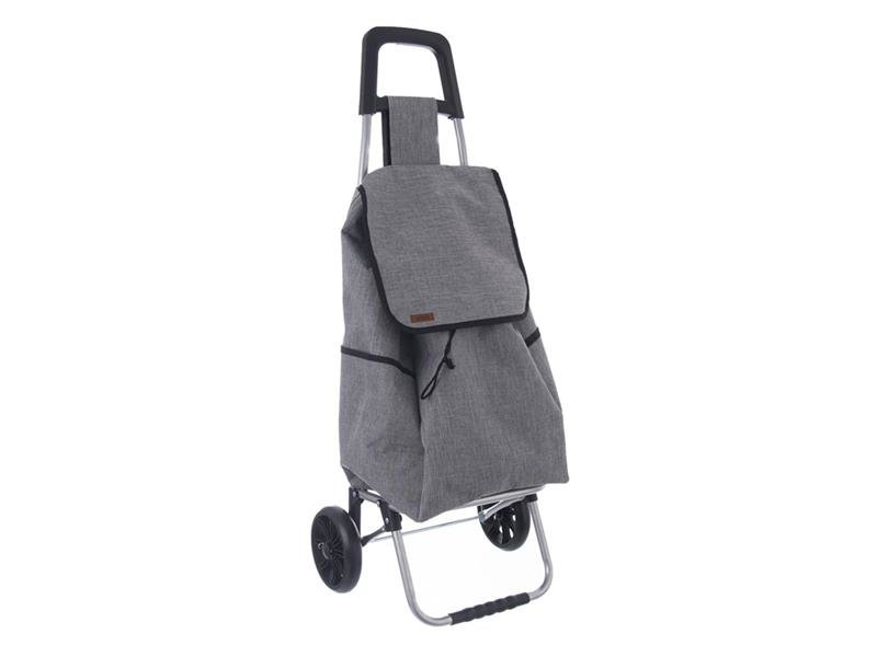 Nákupní taška na kolečkách převeze pohodlně větší nákup nebo usnadní cestu a přenášení věcí starším lidem. Je prostorná, snadno ji upevníte i sejmete z konstrukce s kolečky. Uzavírání na stahovací šňůru. Kapsa na zip v zadní části, postranní kapsy. Snadná údržba - v případě ušpinění doporučujeme otřít vlhkým hadříkem. Materiál: polyester, kov, plast PP, kolečka plast PU. Rozměry: taška 30x22x53 cm, konstrukce 40x30x96 cm. Nosnost: 30 kg. Objem: 40 l. Náhradní kolečko 2 ks bílá 181718 nebo 2 ks černá 181725.