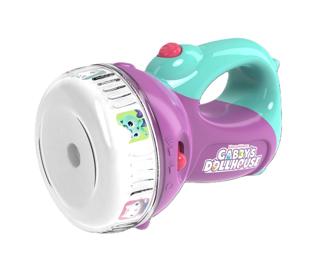 Interaktivní svítilna nabízí možnost přepínání mezi šesti jasnými barvami díky praktickému kolečku. Kromě toho vydává autentické zvuky ze seriálu Gábin kouzelný domek, což zaručuje ještě intenzivnější zážitek při hraní. Svítilna funguje jako skutečné světlo - můžete využít stálé či blikající nastavení, což zabaví děti a zároveň jim umožní bezpečné používání.