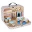 Miniaturní domeček pro panenky v podobě kufříku ukrývá krásný látkový a dřevěný nábytek. Jemné pastelové barvy v kombinaci s přírodním dřevem dodávají interiéru útulnou atmosféru. Do domečku pro panenky lze umístit malé panenky a figurky - vcítěním se do dobrodružství hraček lze rozvíjet empatii a emoční inteligenci.