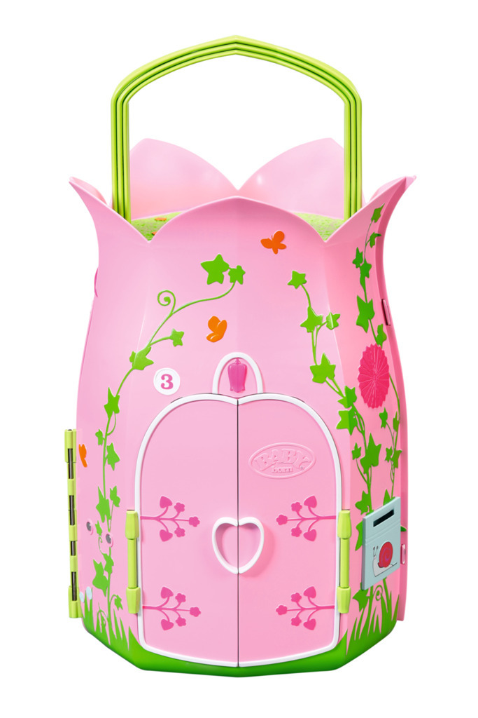 Domeček pro všechny obyvatele pohádkového světa Storybook. Otevřením domečku ve tvaru květiny se odhalí nádherný domov pro víly, který je plný nápadů na hraní a různých doplňků. Obývací pokoj je vybaven stolečkem a krbem. Ze stropu herny visí houpačka. Přihrádka na stěně je skvělým místem pro uložení kouzelné hůlky, třeba když se víla houpe na houpačce. Když se někdo na houpačce zasněně houpe tam a zpět, slyší to celý pohádkový svět. Při houpání totiž zvoní květinový zvonek připevněný k horní části houpačky. Na zábradlí první střešní terasy lze připevnit dalekohled. Je to skvělé místo na sledování nových příběhů a vyhlížení kouzelných kamarádů. Po celodenním dobrodružství můžou obyvatelé pohádkového světa odpočívat na lehátku v druhé části terasy. Rukojeť ve tvaru obří trávy poskytuje dostatek stínu. Zároveň lze díky praktické rukojeti uzavřený domeček jednoduše přenášet.