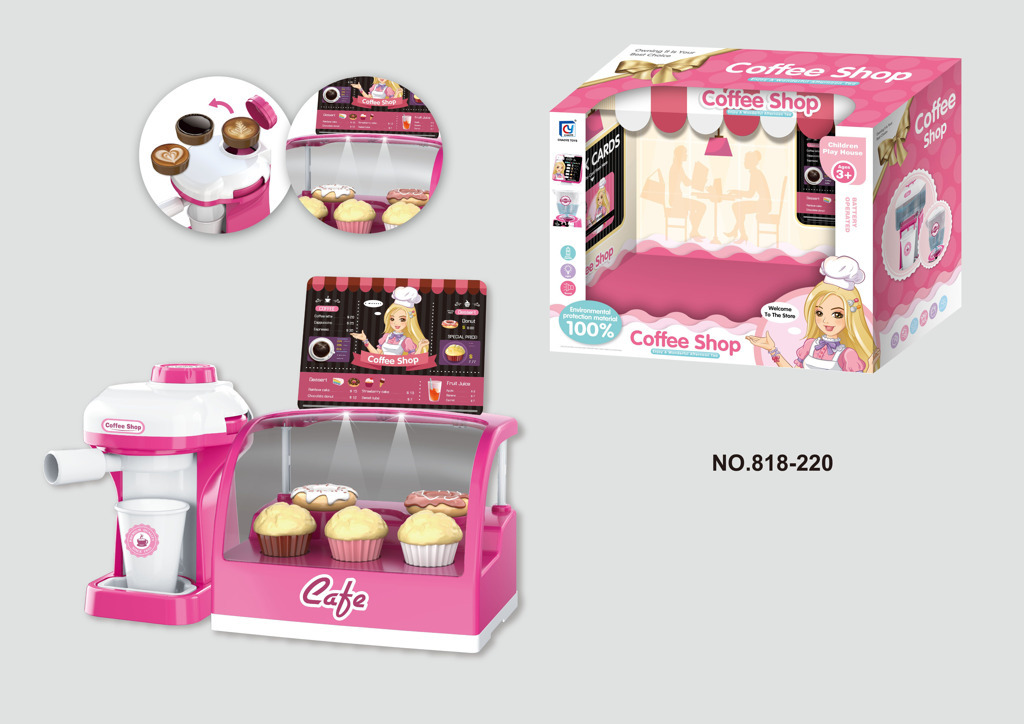Sada pro malé kavárníky. Součástí sady je kávovar a vitrínas koláčky. Sada vyžaduje 3× AG13 baterie- které jsou součástí balení.Výrobek je vhodný pro děti od 3 let.