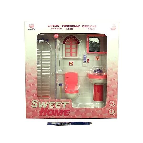 Moderní koupelna s příslušenstvím. Materiál: plast, na baterie. Věk 3+ číst celé