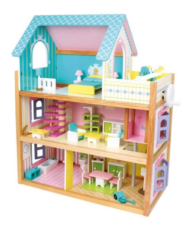 Velmi elegantní dům s různýma barvama stěn a podlah je opravdový dívčím snem! Výtah s klikou nebo točité schodiště pro obyvatele prvního a druhého patra. Barevná okna lze otevřít. Součástí vše dle obrázku.Hloubka 30 cm, šiřka 60 cm, výška 74 cm, přizemí a první poschodí je o 19 cm výše. Německá firma Legler zaměřená na výrobu kvalitních dřevěných hraček od roku 1996. Všechny dřevěné hračky značky small foot mají označení CE a jsou vyráběny dle evropské normy pro bezpečnost hraček EN 71. Použité barvy jsou speciálně vyvinuty pro dřevěné hračky a jsou odolné i proti slinám dětí. Dřevo, které se používá pro tyto hračky, většinou pochází z lesnických společností zapojených do zalesňování. To nabízí všem zákazníkům možnost přispět k zachování přirozeně rostoucích lesů. Dřevěné hračky small foot jsou zářivě barevné produkty, které jsou vyrobeny převážně z přírodních surovin - dřeva. Dětem dělají radost od útlého věku, rozvíjí jejich hmatové a smyslové dovednosti. Cílem značky small foot je podporovat duševní a fyzický vývoj dětí.