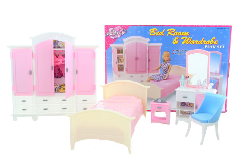 Glorie ložnice obsahuje postel 30 x 17 cm, noční stolek, velkou skříň 28 x 27 cm, toaletku 11,5 x 22 cm a židličku. Součástí jsou také doplňky (kosmetika, květina, budík, ramínka atd.) Rozměry balení cca 42 x 30 x 6,5 cm. Panenka není součástí balení. Věk 3+.