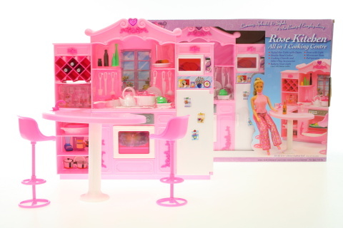 Glorie kuchyňský nábytek pro panenky. Obsahuje plně vybavenou kuchyňskou linku včetně dvou židliček. Panenka není součástí výrobku. Baleno v krabici o rozměru cca 44 x 32 x 7 cm. Lze otevírat dvířka lednice a trouby. Trouba má v sobě zabudované světlo, které lze zapnout. Napájení na 2 baterie LR44 (jsou součástí balení). Rozměry nábytku cca 30 x 22 x 29 cm. Věk 3+