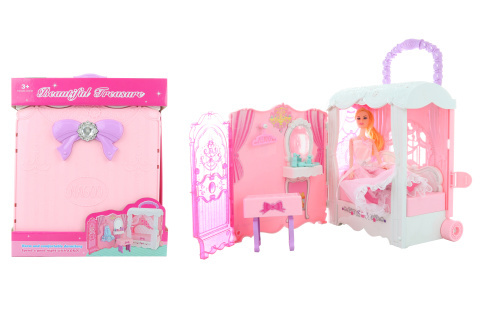 Cestovní kufřík s doplňky pro panenku a panenkou. V kufříku je sedací souprava, toaletka, stolička a další doplňky pro panenku. Součástí balení je také kloubová panenka o velikosti cca 30 cm. Rozměry balení cca 25,5 x 30 x 15 cm. Věk 3+