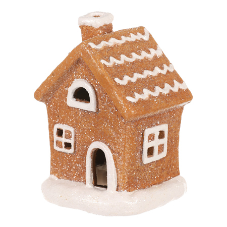 Perník k Vánocům prostě patří a tento domeček je skvělou možností, jak si dokonale vyzdobit svůj domov v tento sváteční čas. Tato oku lahodící dekorace je z terakoty, ale vypadá téměř jako by byla skutečně sestavená z perníku, a to díky svému věrohodnému zpracování a detailnímu bílému zdobení. Má bílá okénka, dvířka a další ozdobné prvky. Zasněžený komín a okolí domku jen potrhuje krásu zimního období. Domeček je vybaven LED osvětlením, které je napájeno dvěma bateriemi typu LR44, což umožňuje vyvolat neodolatelný světelný efekt za dlouhých zimních večerů.