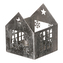 Svícen kovový - tvar domečku, větší vel., barva stříbrná.