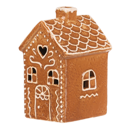 Domeček perníkový - keramika, LED osvětlení, hnědý